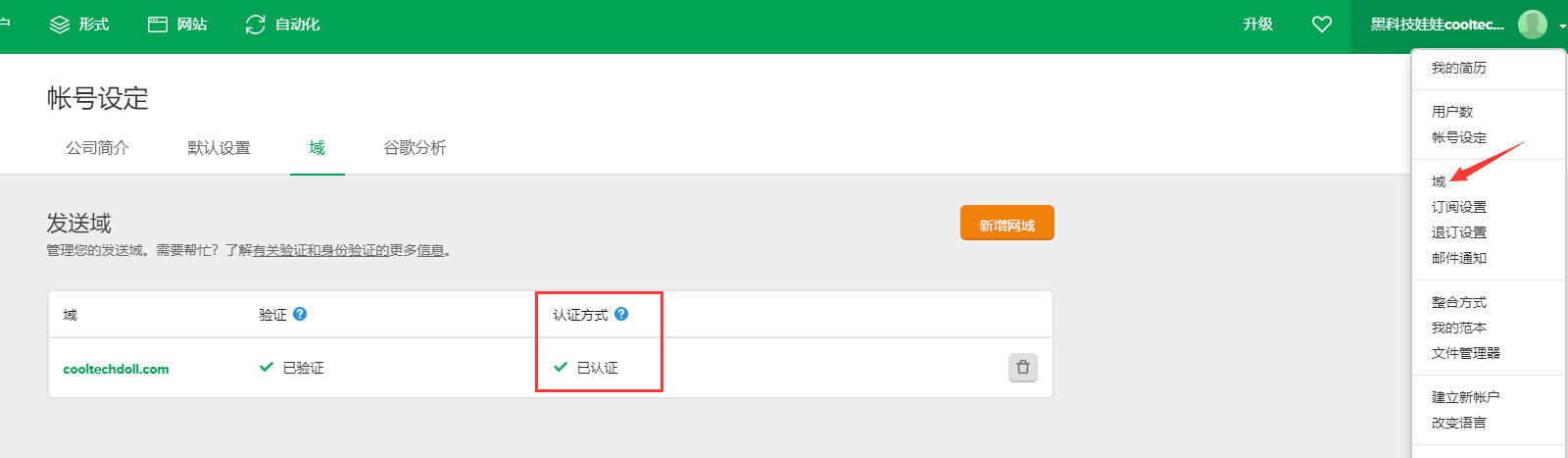 如果使用了网站后缀的域名邮箱,就需要对域名进行身份验证,这个对于广告系列的投放至关重要。这将使你的邮件更加可信,避免进入垃圾箱。